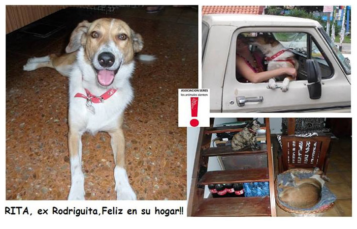 Hola gente!!!Cómo andan? Acá todo muy bien, con Rita nos llevamos de maravilla, estamos felices de tenerla con nosotros y de que cada día que pasa se adapta más a la vida fuera del refugio, ya no está tan temerosa cuando salimos de paseo,se acostumbra a los viajes en camioneta y cada vez que llegamos a casa mi marido o yo nos hace una fiesta que nos llena el corazón de alegría.